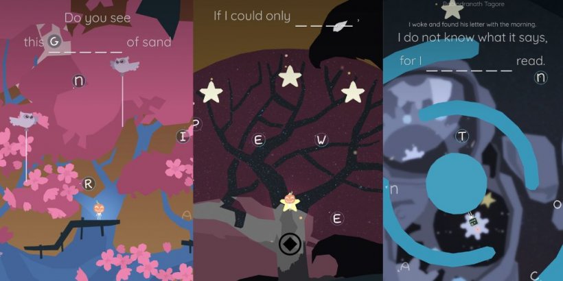 Once you spawn, incomplete stanzas appear line by line on the screen. Relying on either your inner Shakespeare or Google cheat codes, you can dart around the screen to collect letters. Use them to spell the missing words. The controls are simple: swipe and release to leap; swipe and hold to dash on land and in mid-air. While in mid-air, you can perform a triple jump. It demands absolute precision in your haptics as you don’t want to overshoot a ledge.